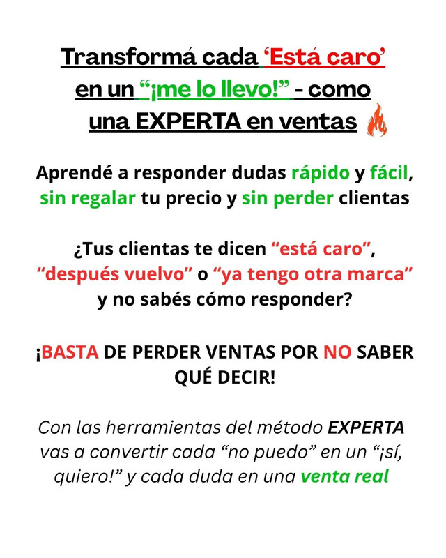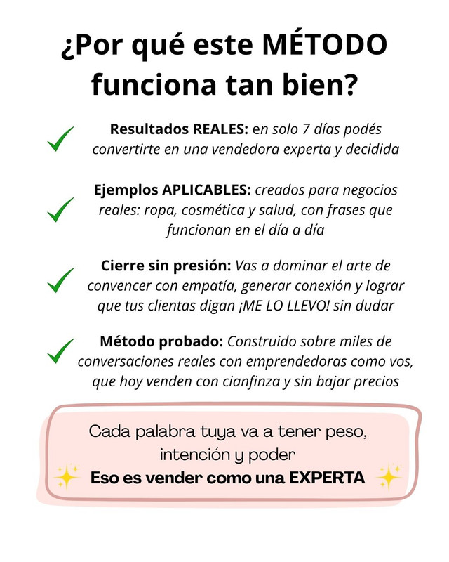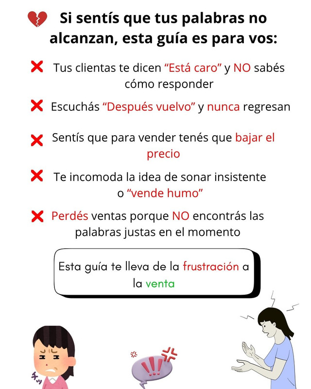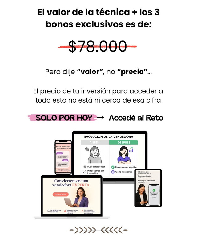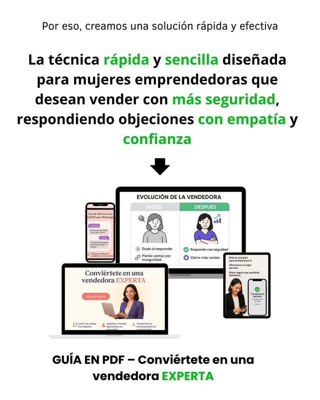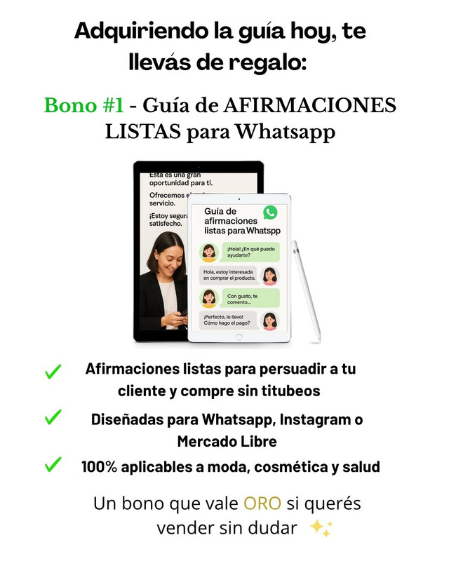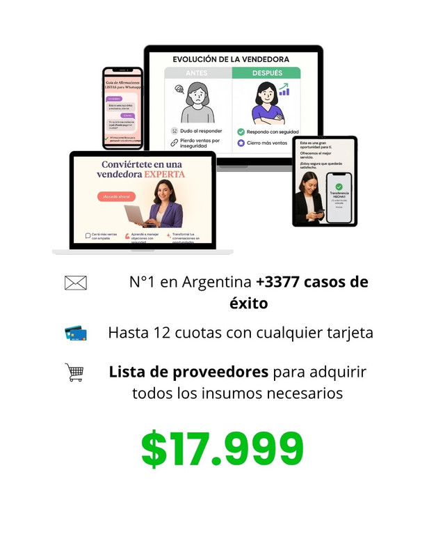 Sabés que tu producto vale. Lo que te frena no es el precio: es la inseguridad al responder. Cada día que pasa, otra clienta se va sin comprar.
